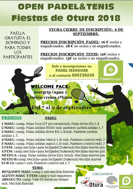 III Open Pádel&Tenis Villa de Granada fiestas de Otura 2018