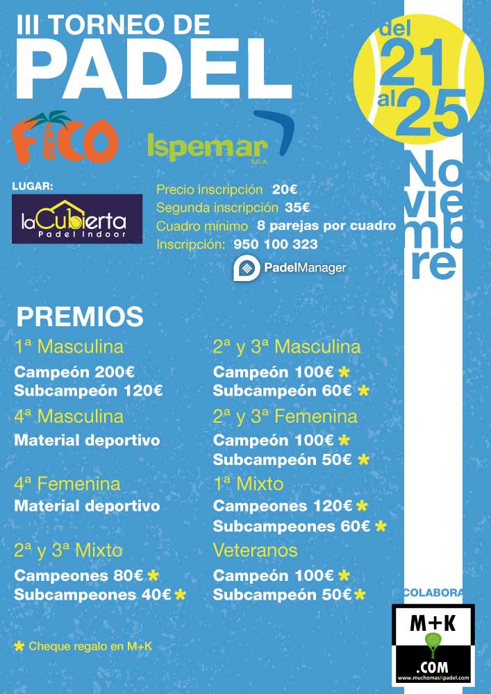 III TORNEO PADEL FICONUTRIENTES DEL 21 AL 25 DE NOVIEMBRE
