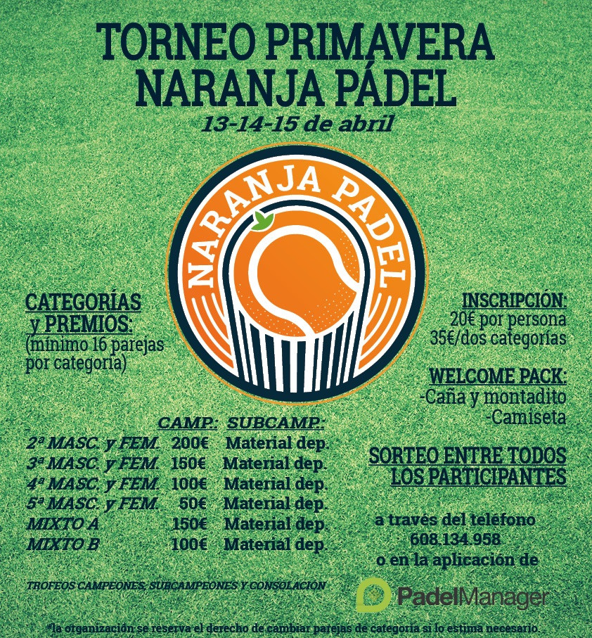 TORNEO PRIMAVERA NARANJA PÁDEL