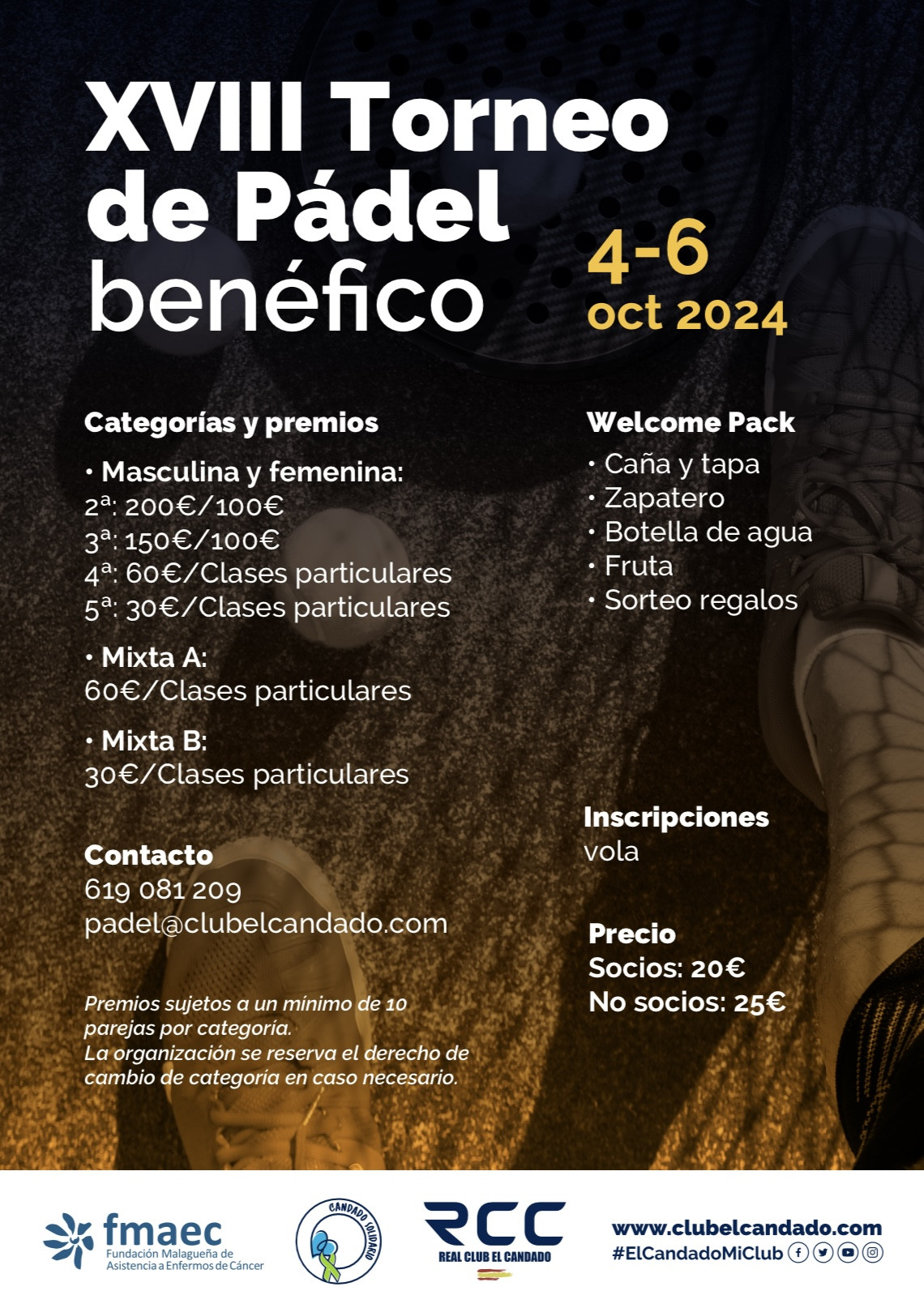 XVIII TORNEO BENÉFICO de PÁDEL a beneficio de FMAEC y CANDADO SOLIDARIO - Vola